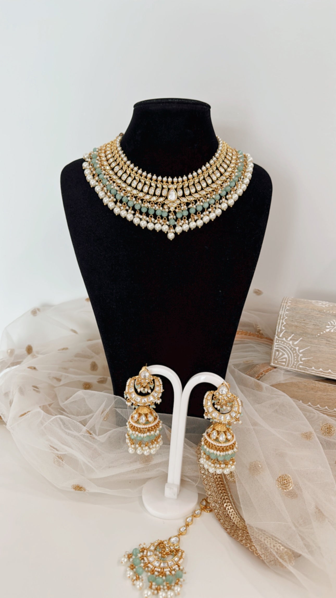 Necklace, earrings and tikka